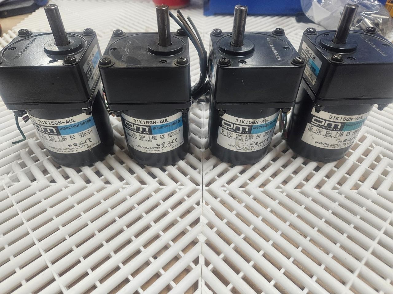 Here are some Oriental motors with gearheads attached. These are rated for 100-115V AC single phase. They include 12.5:1 gear reducers. They have a few light scuffs on the labels, but otherwise are in good running and cosmetic shape. Each purchase is for one motor + gearhead. Home POLICIES CONTACT US ABOUT ME FEEDBACK view all items Menu Home POLICIES CONTACT US ABOUT ME FEEDBACK view all items Categories Ball Screws / Shaft Couplings Cable Chains Cables for Automation Cameras for Automation Contactors/Relays Control Systems and PLCs Heating/Cooling for Automation Hydraulics Gear Reducers / Gear Heads Lab/Analytical Equipment Lasers Linear Actuators Linear Guides Liquid Valves/Flow Controls Manufacturing / Metalworking Motors For Automation Optics Power Supplies/Circuit Breaker Pneumatic Actuators /Cylinders Pneumatic Valves Safety Hardware for Automation Sensors Servo Motors / Servo Drives Stepper Motors /Stepper Drives Switches For Automation Transformers Vaccum Equipment Wiring for Automation Oriental 3IK15GN-AUL Motor with 3GN12.5K Gearhead Single Phase 110-115V Item Specifications