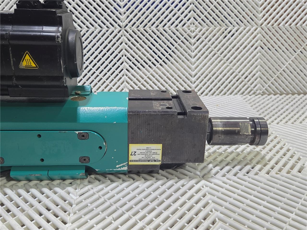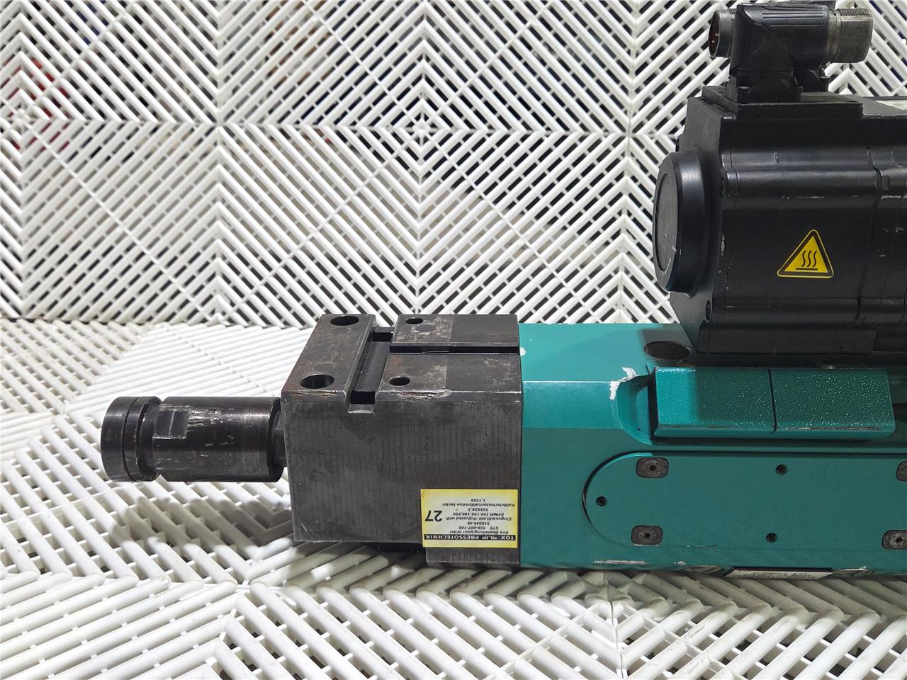 Here is a Tox Pressotechnik EPMR 100.158.100.000 Electric Press Drive 100kN, 120 mm/s. In good condition with minor cosmetic wear, pulled from working equipment.