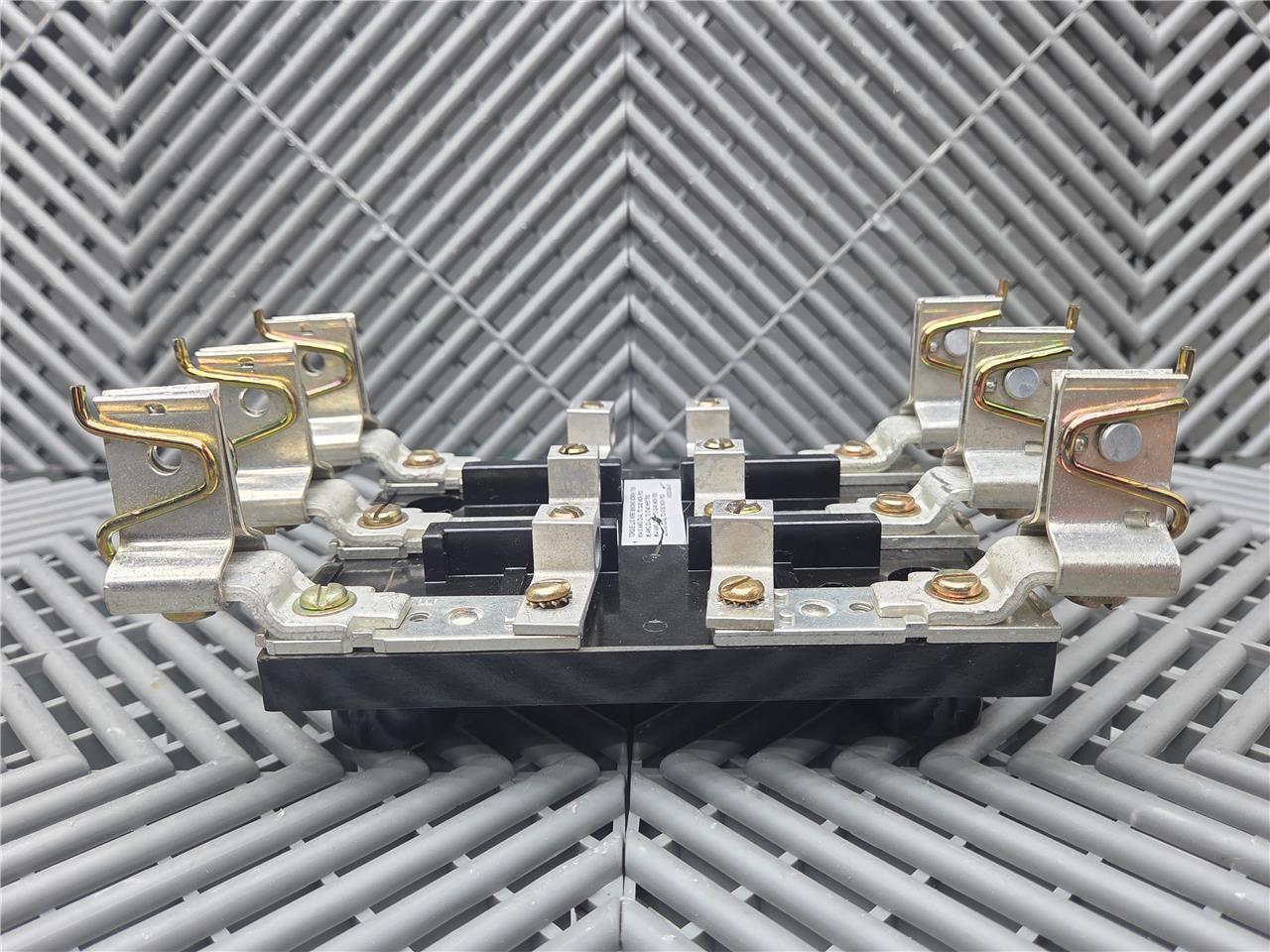 Here is a Square D A30325-284-03 Fuse Block for Starter MCC Model 6 Buckets. This item is in good condition with minimal wear, pulled from working equipment. Does not include fuses. Note the contacts that hold the fuses are different from the other models we have. Refer to the pictures below.