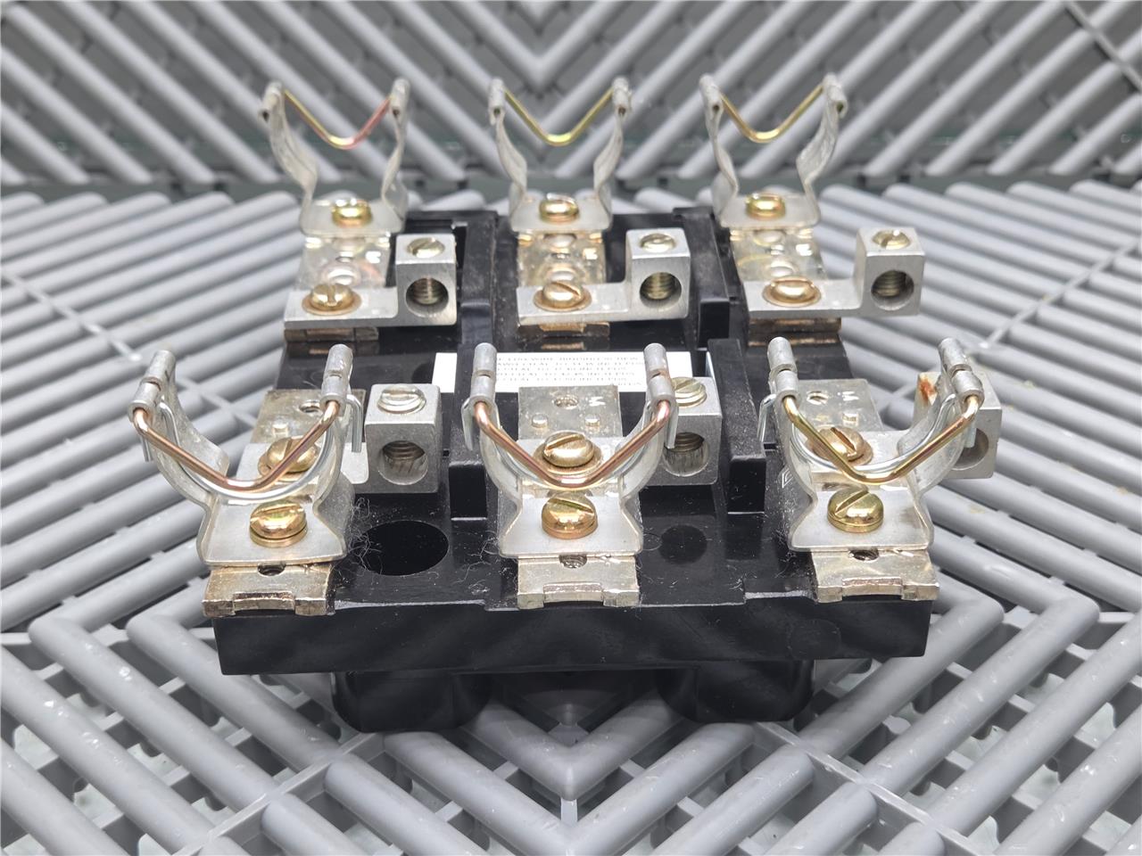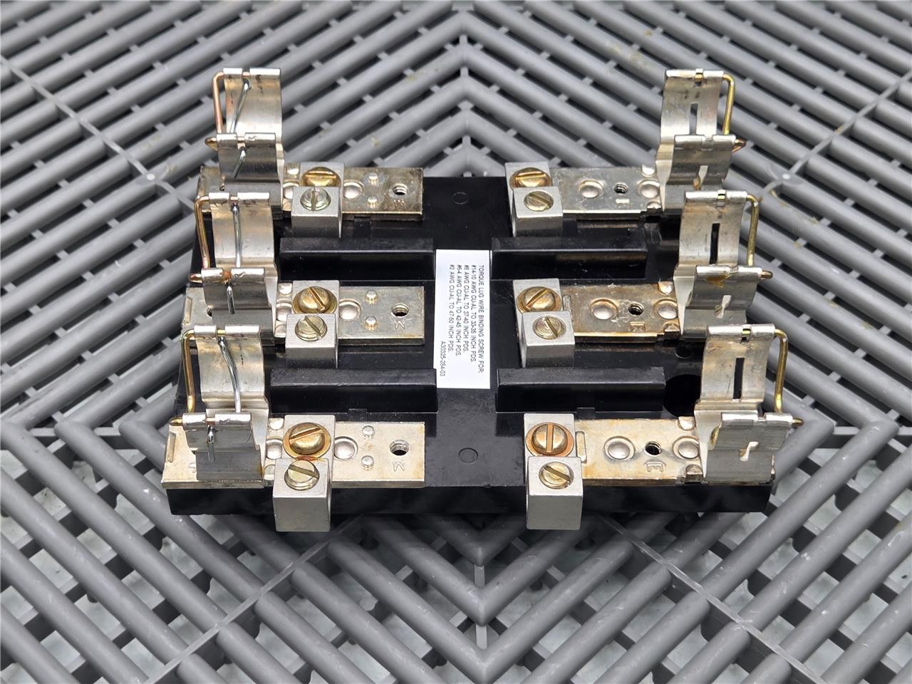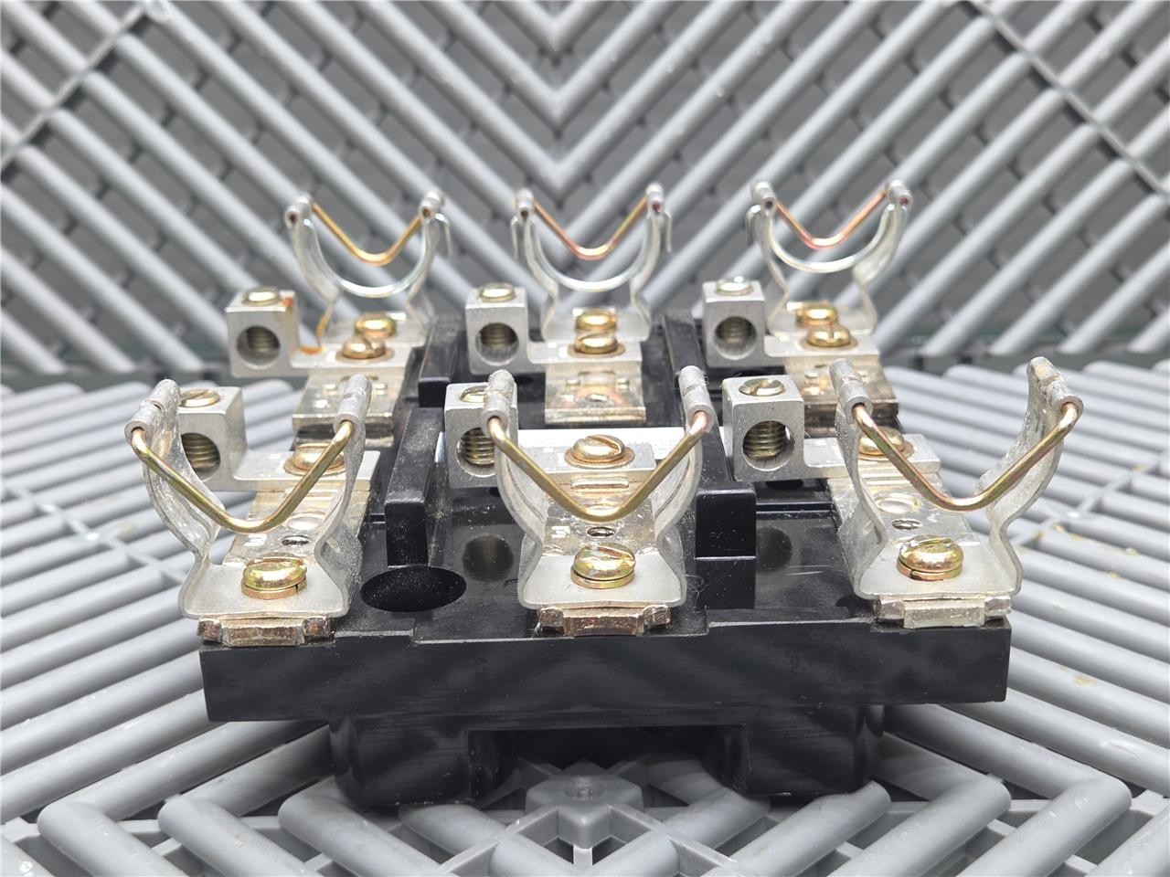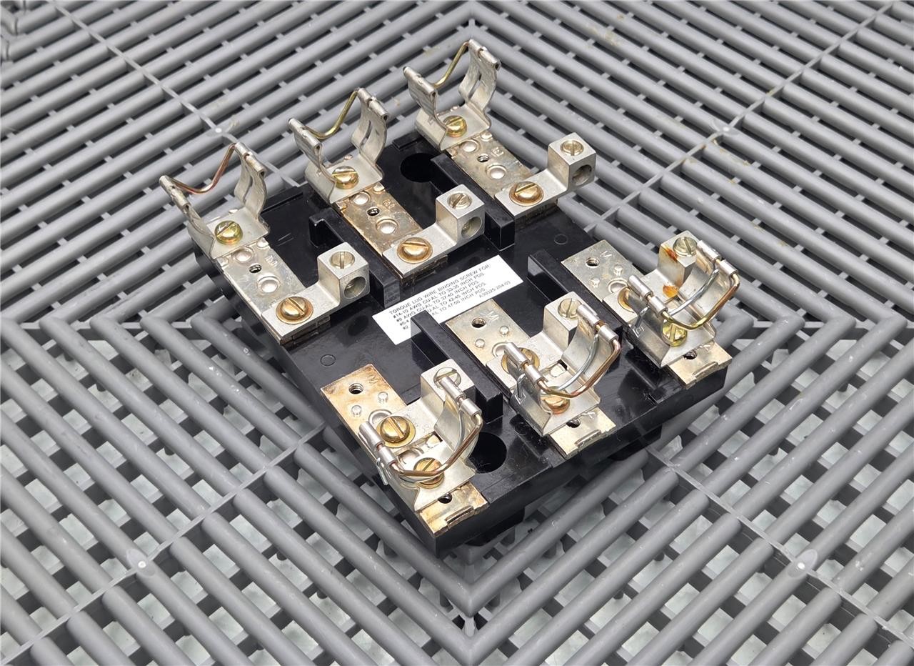 Here is a Square D A30325-284-03 Fuse Block for Starter MCC Model 6 Buckets. This item is in good condition with minimal wear, pulled from working equipment. Does not include fuses. Note the contacts that hold the fuses are different from the other models we have. Refer to the pictures below.