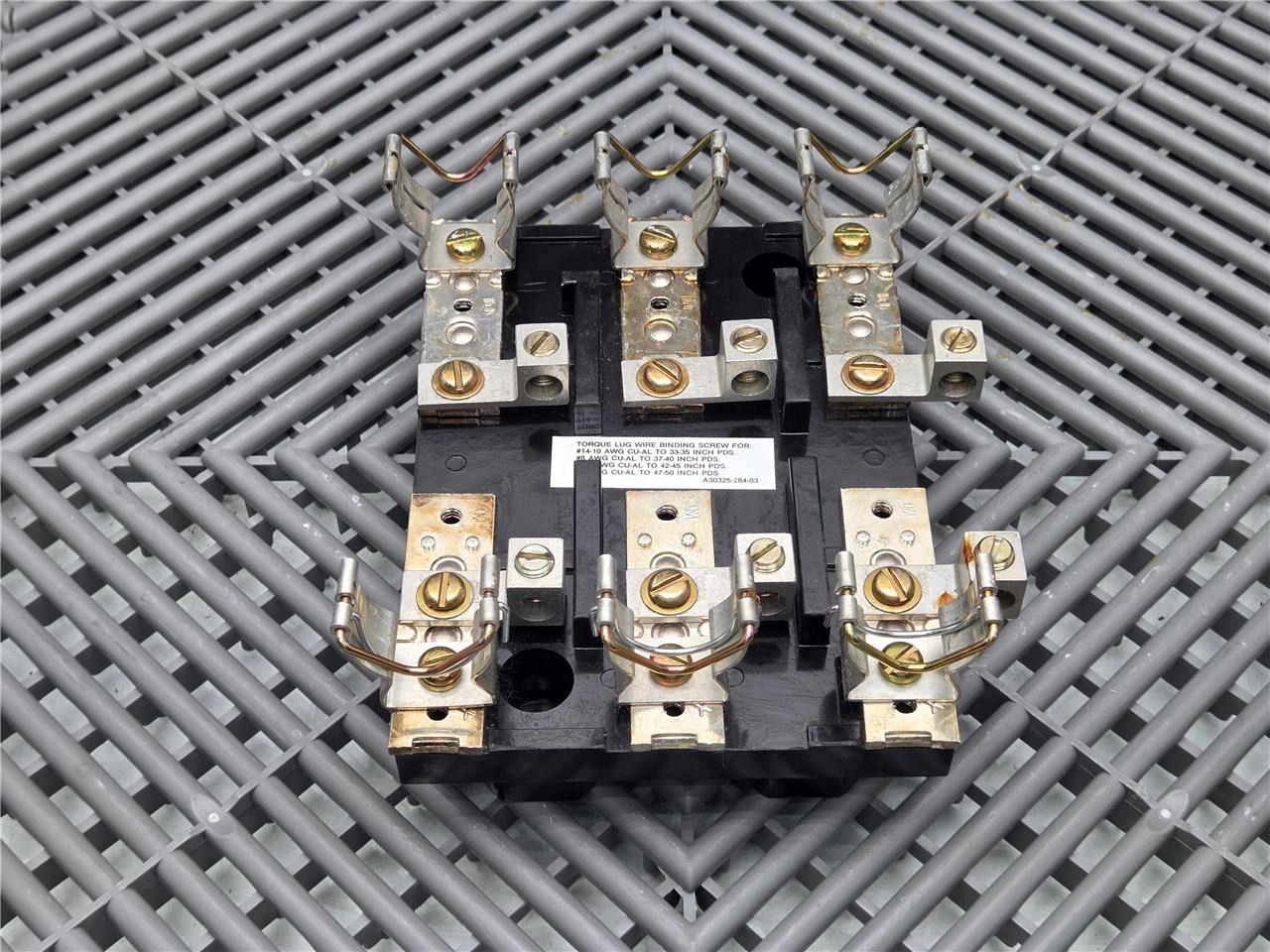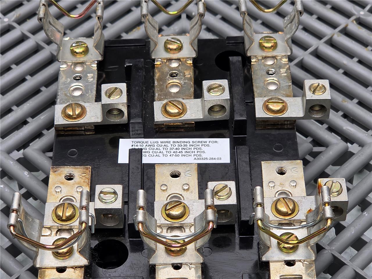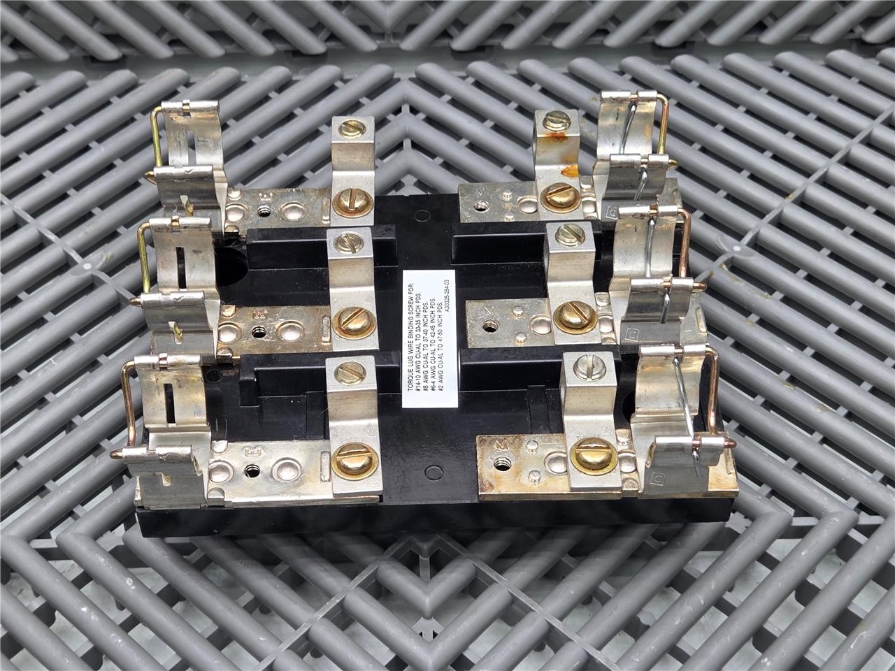Here is a Square D A30325-284-03 Fuse Block for Starter MCC Model 6 Buckets. This item is in good condition with minimal wear, pulled from working equipment. Does not include fuses. Note the contacts that hold the fuses are different from the other models we have. Refer to the pictures below.
