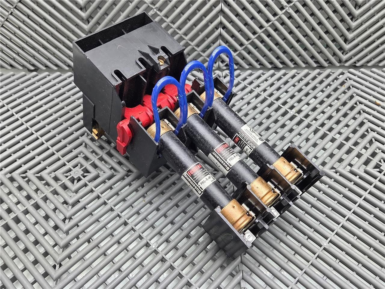 Here is a Square D Fusible Disconnect Switch D-40555-001 CAV-1 with a 40512-412-01 Load Base. This item is In good condition with minimal wear, pulled from a working Square D Model 6 MCC motor starter bucket. Does not include fuses.