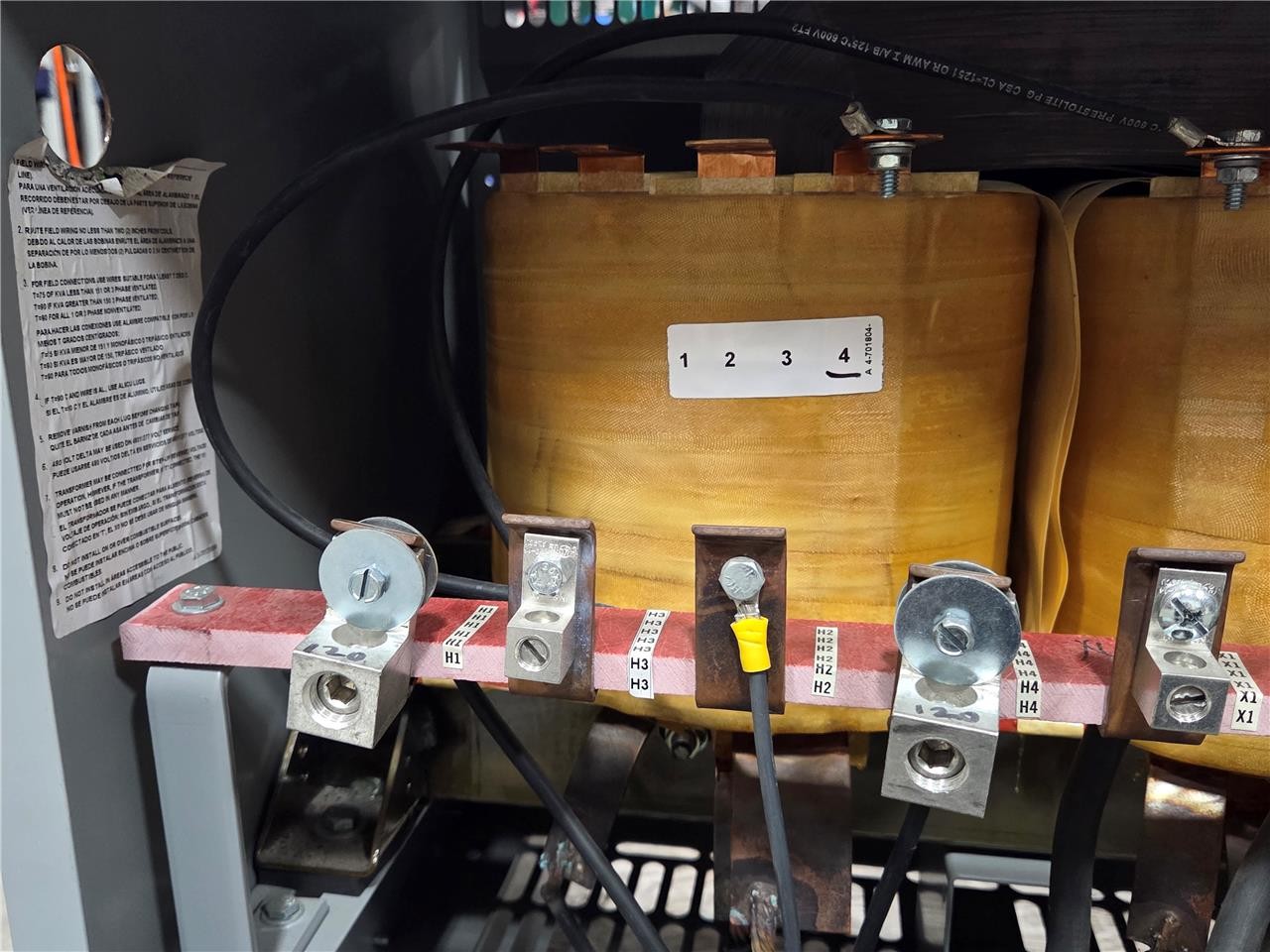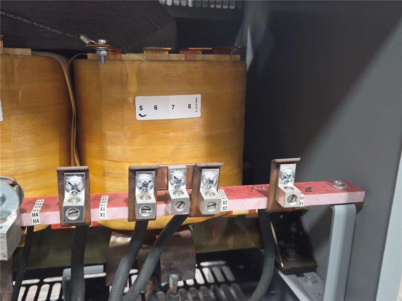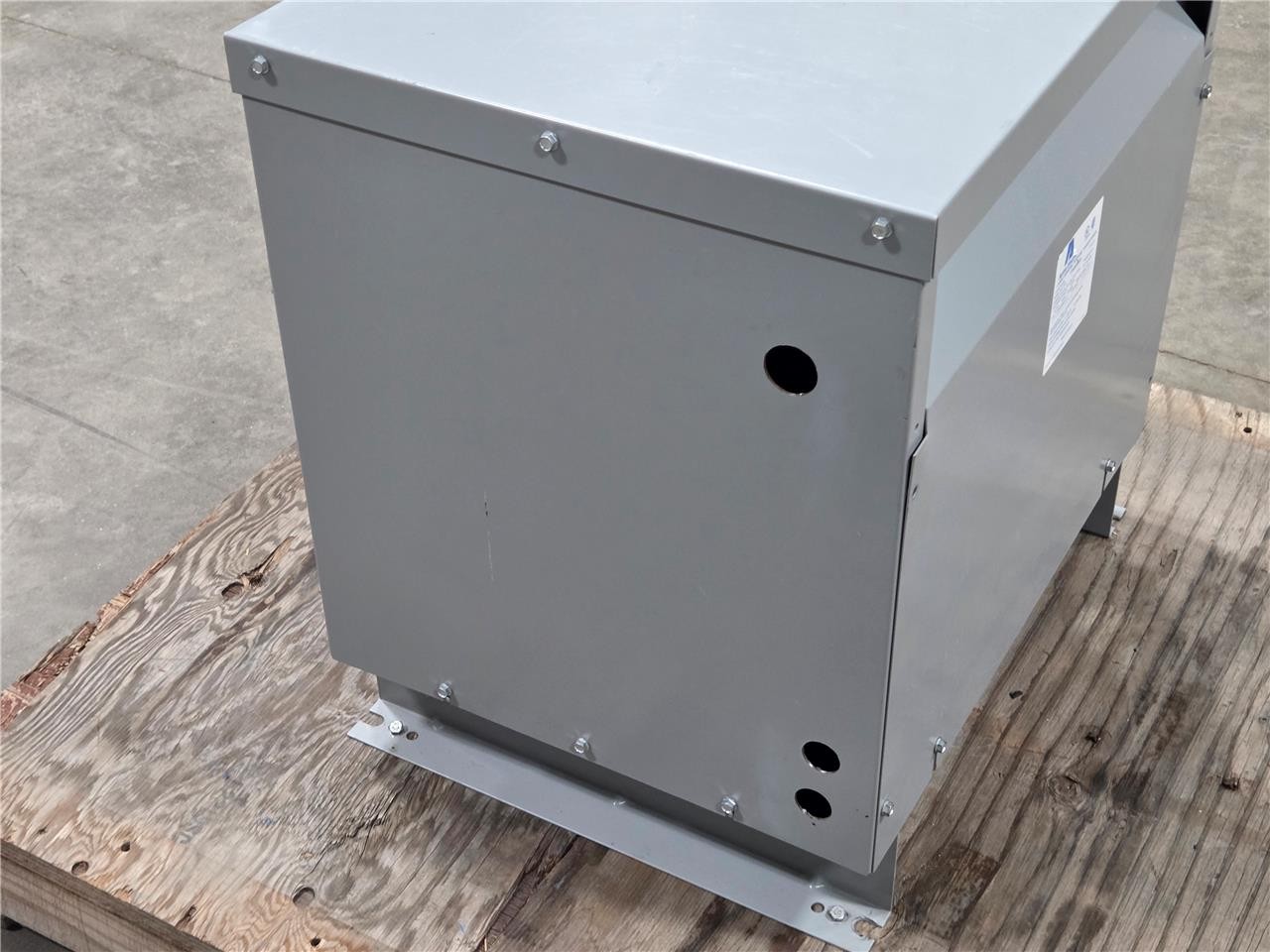 Here is an Acme TP530203S Large General Purpose Transformer. This has dual ratings. The first is 240×480 primary to 120/240V secondary. This is rated for 50 kVA with a 480V input. This is item is used but in great overall condition with minimal cosmetic blemishes such as a small bend on the top panel and minor scratches / scuffs.
