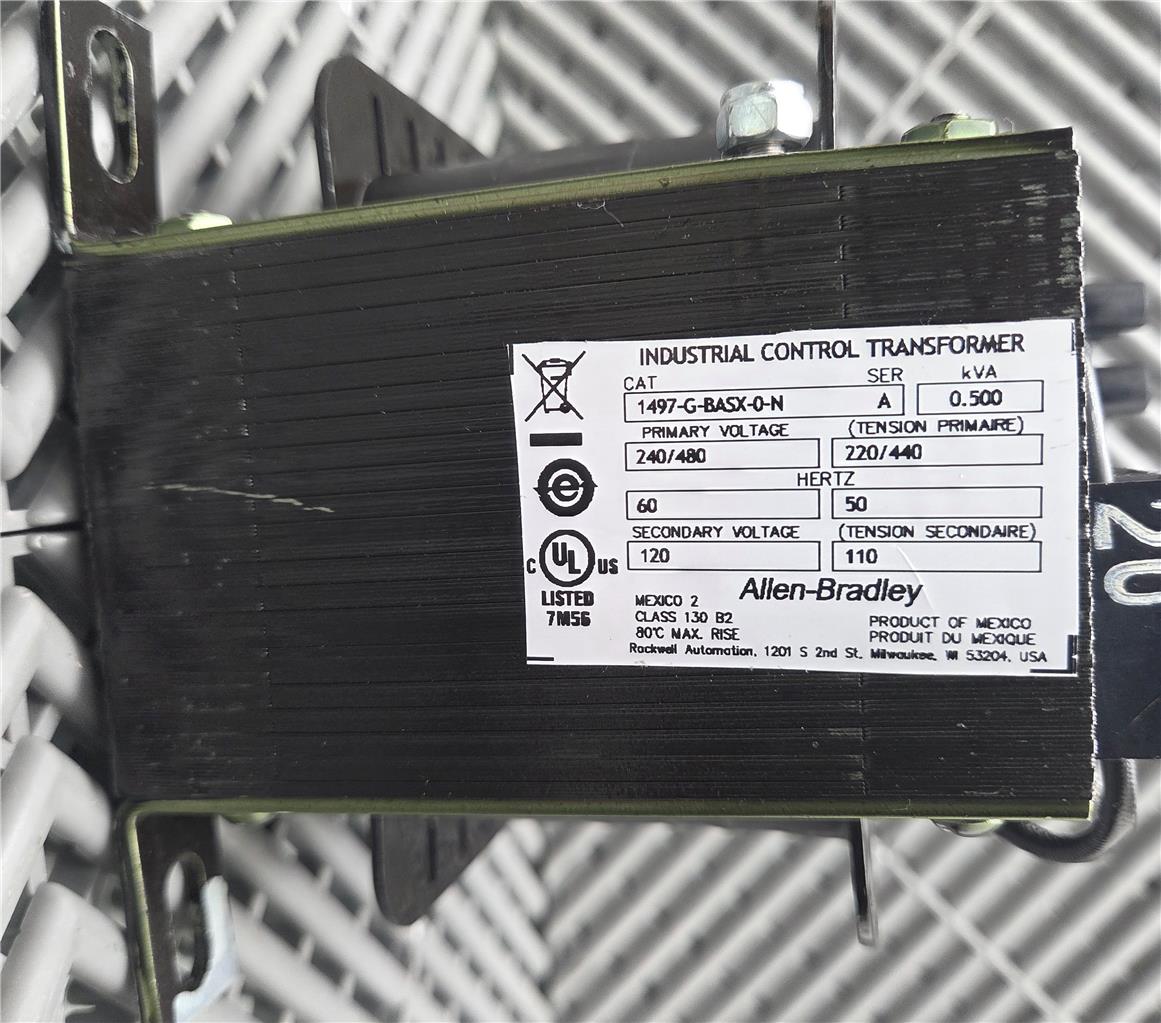 Here is an Allen-Bradley 1497-G-BASX-0-N Industrial Control Transformer 240/480V. New open box, mounted but never energized.