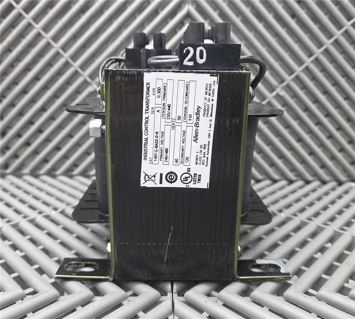 Here is an Allen-Bradley 1497-G-BASX-0-N Industrial Control Transformer 240/480V. New open box, mounted but never energized. Home POLICIES CONTACT US ABOUT ME FEEDBACK view all items Menu Home POLICIES CONTACT US ABOUT ME FEEDBACK view all items Categories Ball Screws / Shaft Couplings Cable Chains Cables for Automation Cameras for Automation Contactors/Relays Control Systems and PLCs Heating/Cooling for Automation Hydraulics Gear Reducers / Gear Heads Lab/Analytical Equipment Lasers Linear Actuators Linear Guides Liquid Valves/Flow Controls Manufacturing / Metalworking Motors For Automation Optics Power Supplies/Circuit Breaker Pneumatic Actuators /Cylinders Pneumatic Valves Safety Hardware for Automation Sensors Servo Motors / Servo Drives Stepper Motors /Stepper Drives Switches For Automation Transformers Vaccum Equipment Wiring for Automation Allen-Bradley 1497-G-BASX-0-N Industrial Control Transformer 240/480V Item Specifications