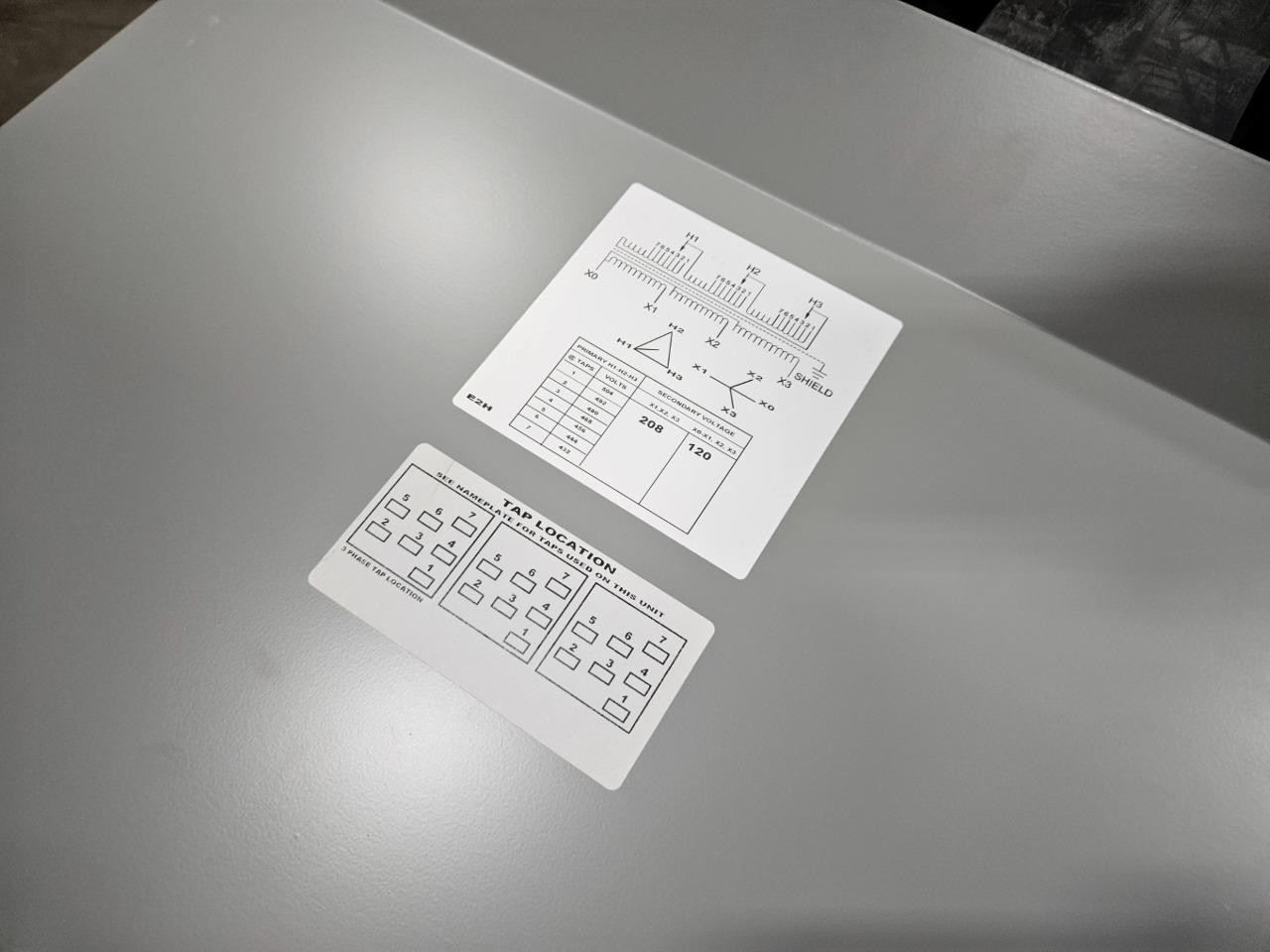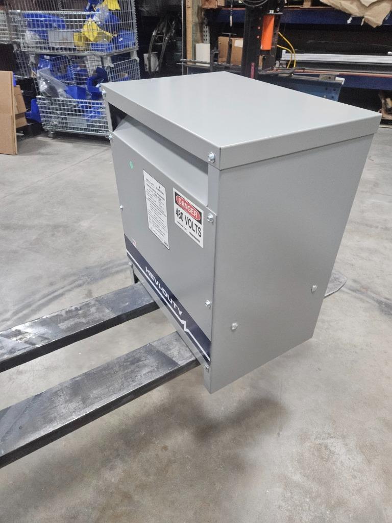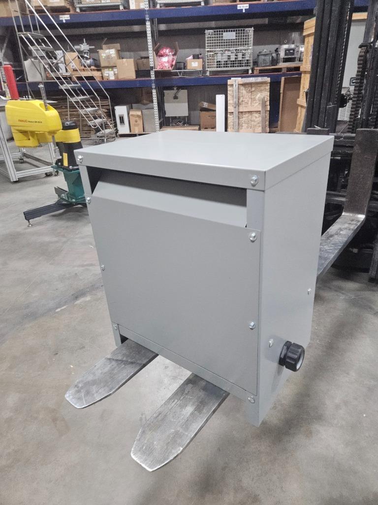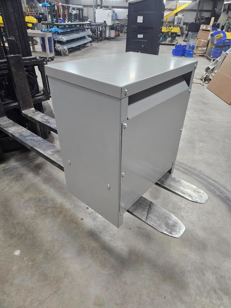 Here is an Emerson transformer. This was on a line purchased with Covid money that was never used. The transformer has never been electrically connected. Apart from one conduit punch on the side, it is in new functional and cosmetic shape.  LTL shipping is a flat $300 to business addresses within the continental US.
