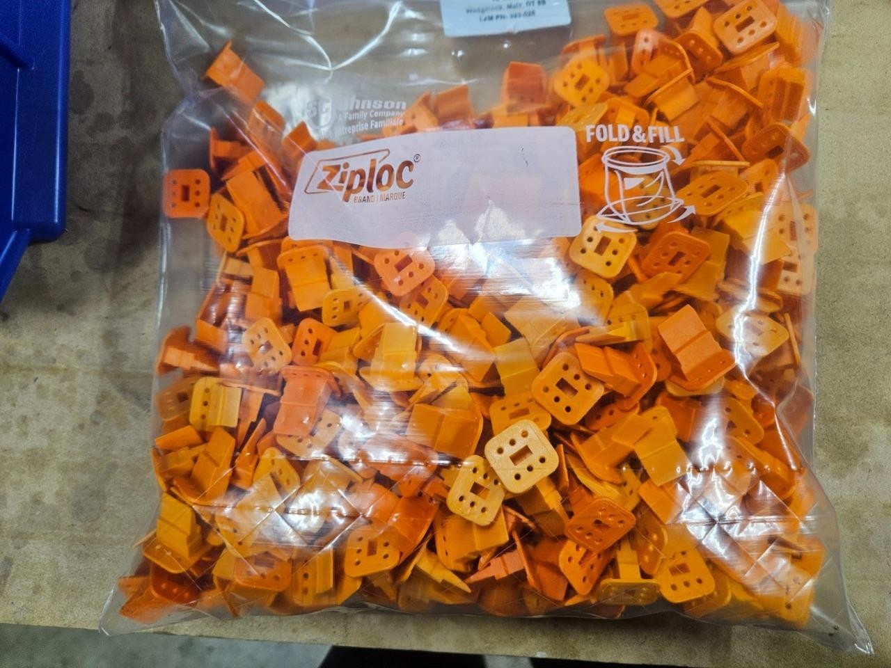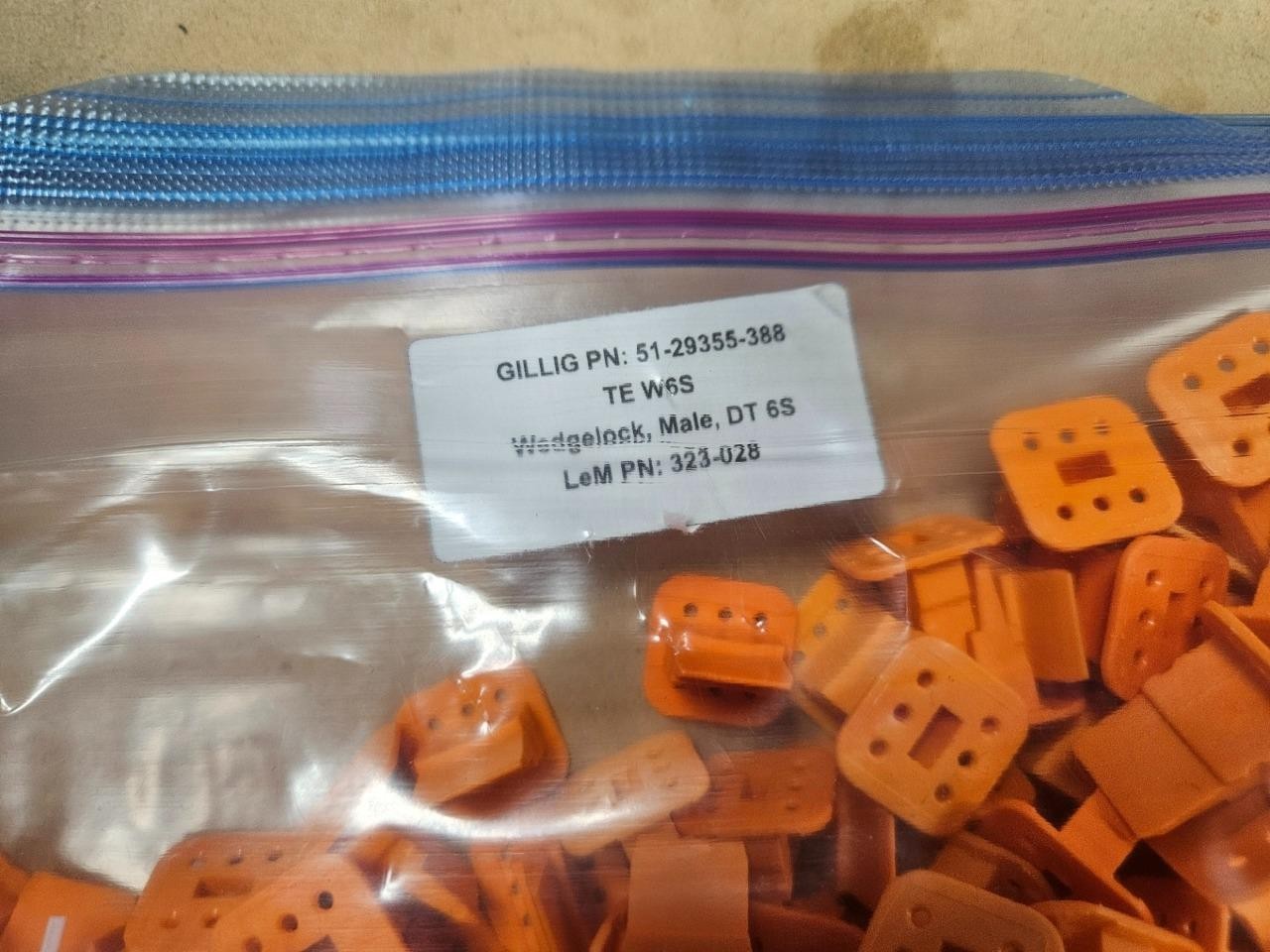 Here is a lot of 450 New TE Connectivity / Deutsch W6S Wedgelocks for 6 pole DT connectors. Over 450 wedgelocks are included in a sealed bag as shown. These are surplus from a major automotive manufacturer.Â