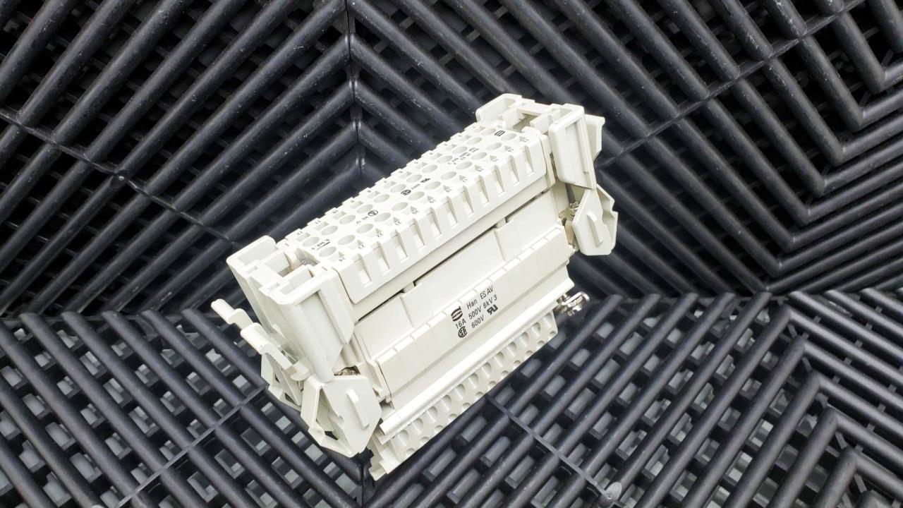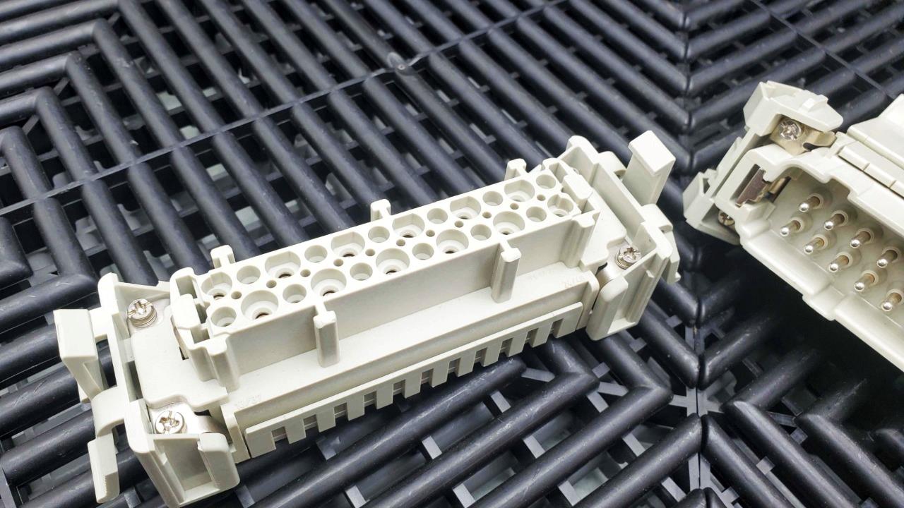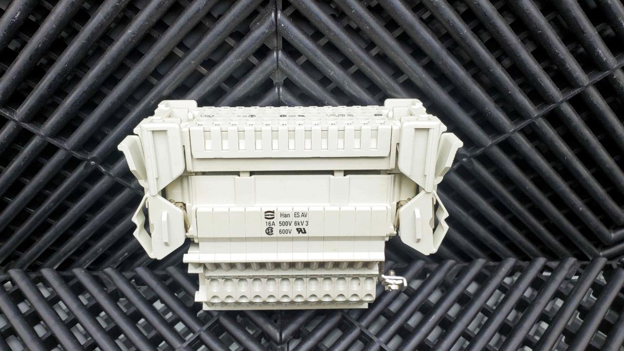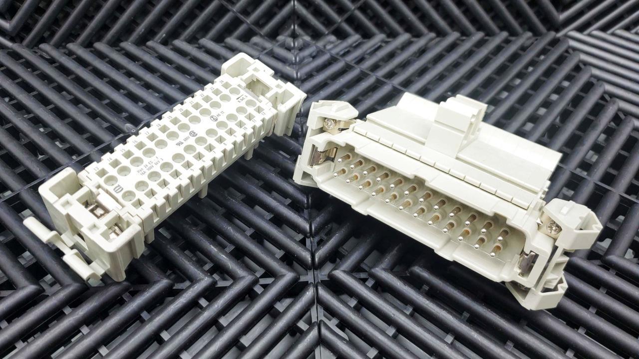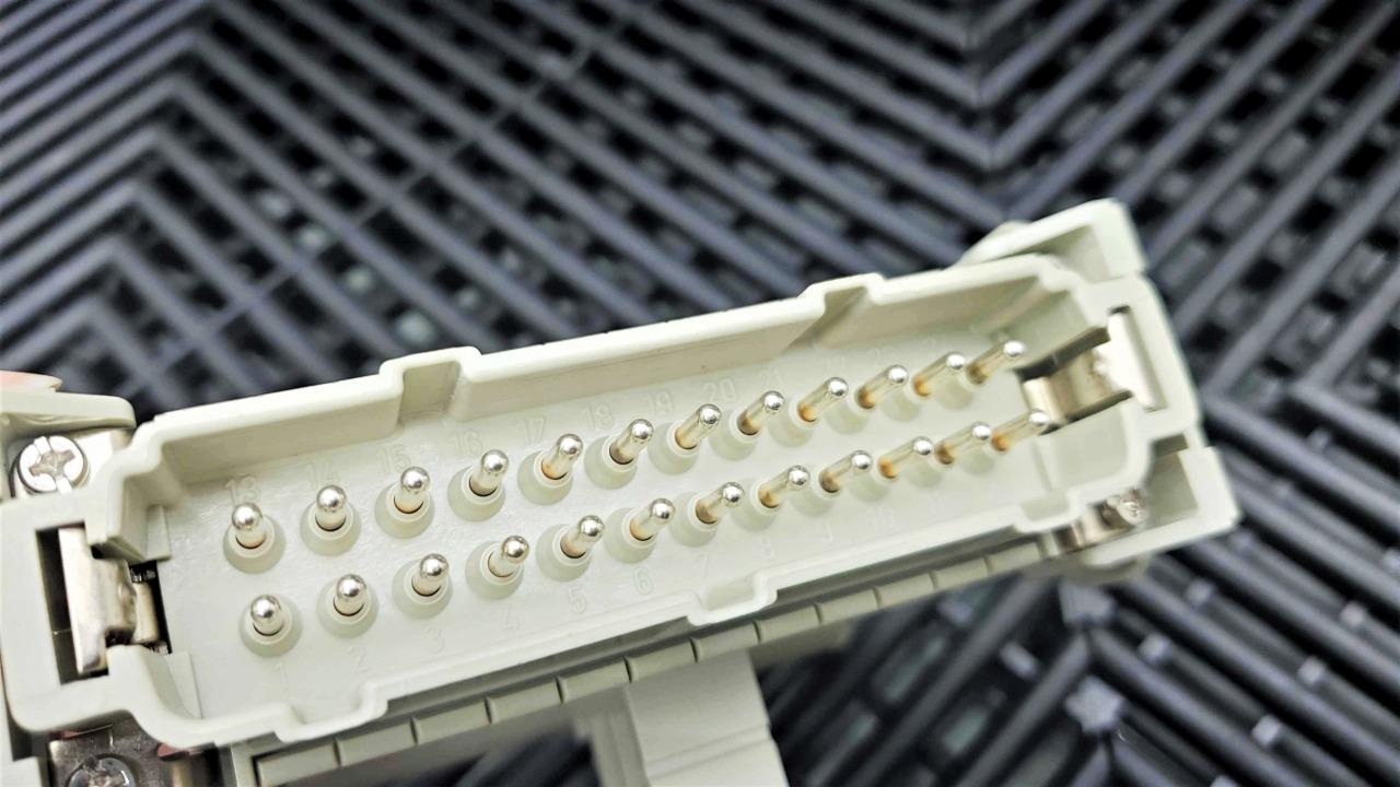 Here is a Harting HAN 24 ES AV Terminal Connector w/ 09330242716 Female Insert 24 ES-F. In excellent condition with minimal wear except for one missing posterior clip, see photos.Â