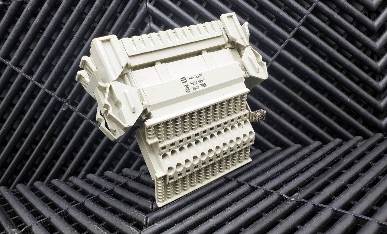 Here is a Harting HAN 24 ES AV Terminal Connector w/ 09330242716 Female Insert 24 ES-F. In excellent condition with minimal wear except for one missing posterior clip, see photos. Home POLICIES CONTACT US ABOUT ME FEEDBACK view all items Menu Home POLICIES CONTACT US ABOUT ME FEEDBACK view all items Categories Ball Screws / Shaft Couplings Cable Chains Cables for Automation Cameras for Automation Contactors/Relays Control Systems and PLCs Heating/Cooling for Automation Hydraulics Gear Reducers / Gear Heads Lab/Analytical Equipment Lasers Linear Actuators Linear Guides Liquid Valves/Flow Controls Manufacturing / Metalworking Motors For Automation Optics Power Supplies/Circuit Breaker Pneumatic Actuators /Cylinders Pneumatic Valves Safety Hardware for Automation Sensors Servo Motors / Servo Drives Stepper Motors /Stepper Drives Switches For Automation Transformers Vaccum Equipment Wiring for Automation Harting HAN 24 ES AV Terminal Connector w/ 09330242716 Female Insert 24 ES-F Item Specifications