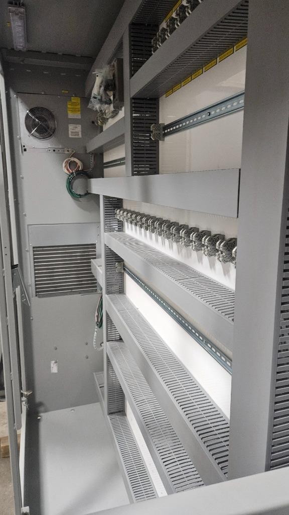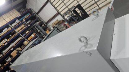 Here is a very large Hoffman three door electrical enclosure. This is new and was never fully installed as the plant went under before it was put into use. As shown, all hardware has 2021 and later date codes. Holes were cut for conduit and it was wired, but was removed before being put into service. It is complete with an Allen Bradley 480V / 400A fusible disconnect, Hoffman SpectraCool 20,000 BTU air conditioner, external Sola 3 kVA transformer, LED lights, door interlock switches, Hoffman flash disconnect shroud, power distribution block etc.