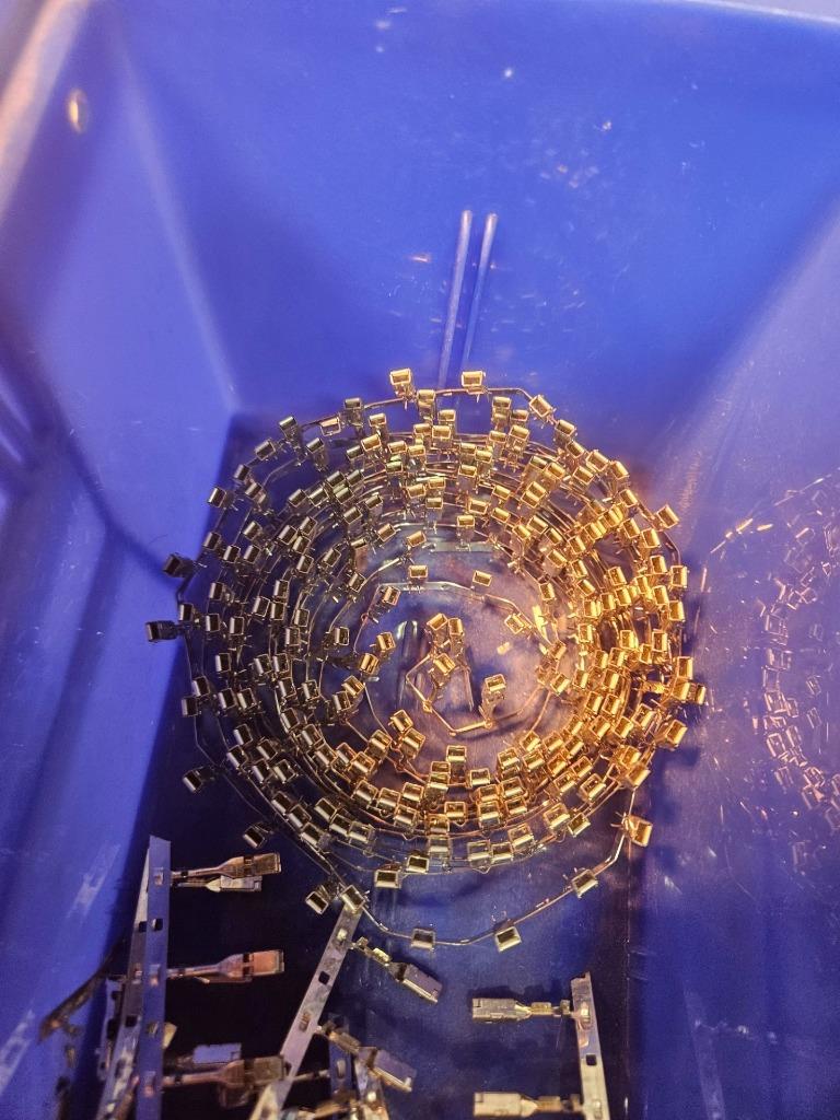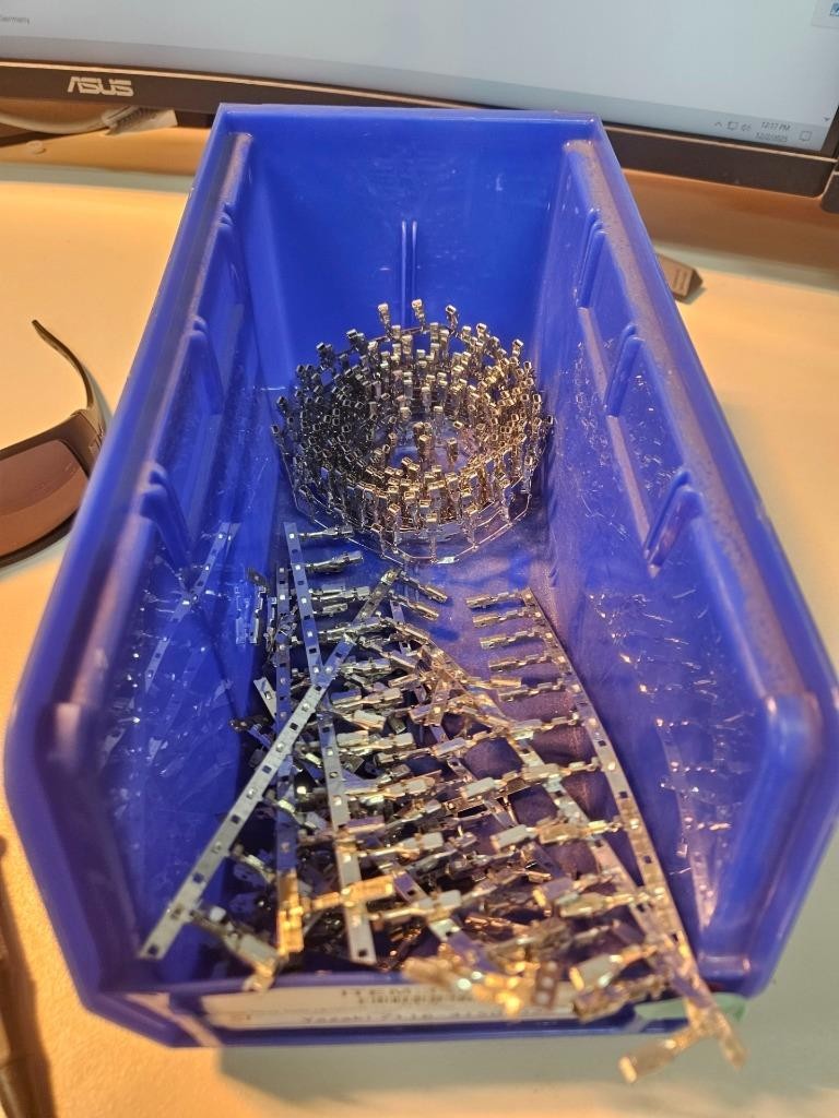 Here is a new lot of Yazaki 7116-4150-02 female contacts. These are female YESC 2.8mm series contacts for 22-18 AWG wire. There are over 200 contacts. Most are on a reel as shown with a few on cut tape strips. All are included as shown.Â